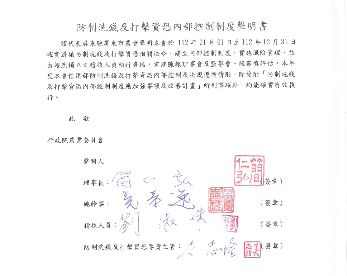 112年度防制洗錢及打擊資恐內部控制制度聲明